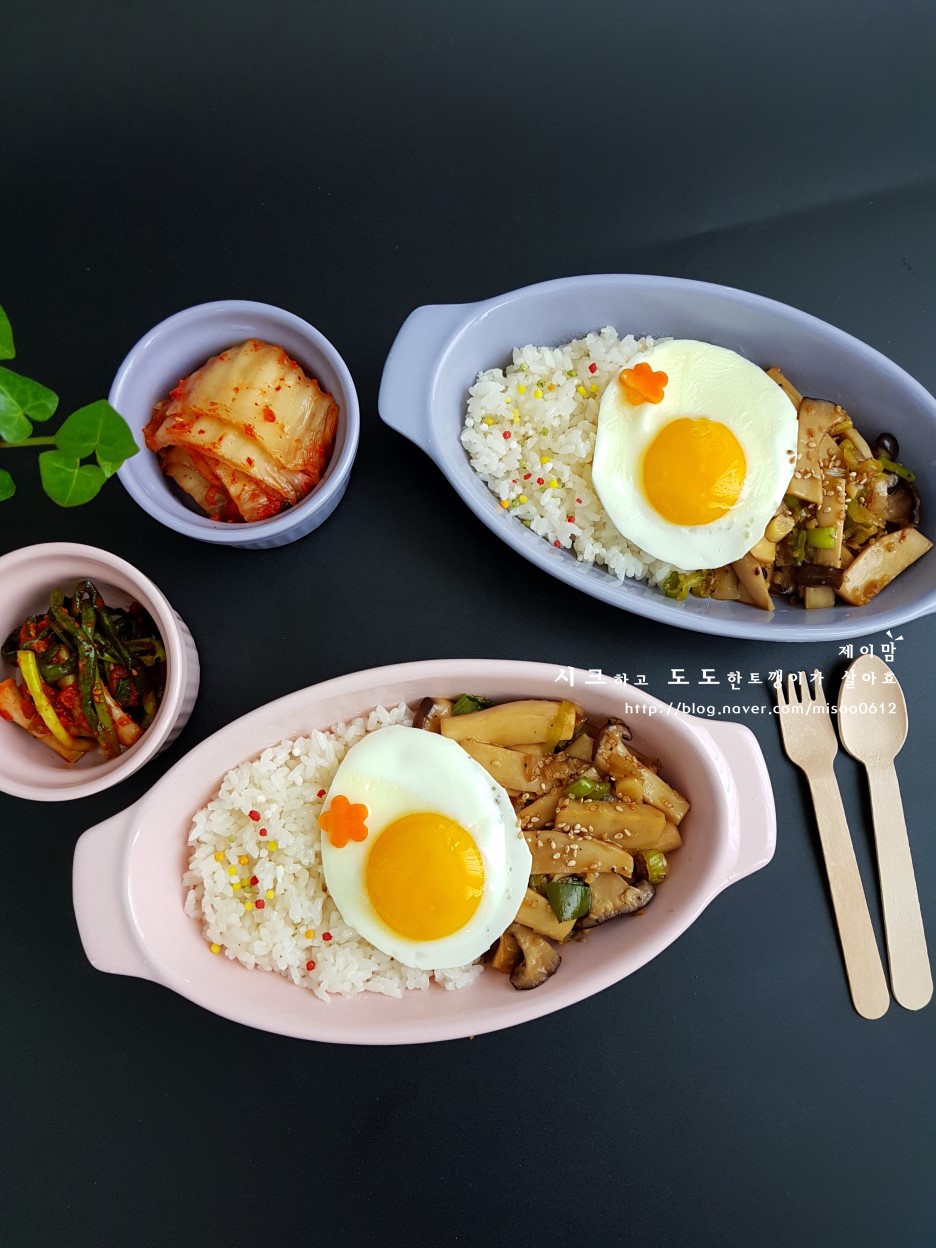 温かいご飯を丼に盛り付けます。その上に、丁寧に炒めたエリンギの具材をたっぷりと乗せ、最後に焼き立ての目玉焼きを美しく添えれば、味も見た目も満点の「エリンギ丼」の完成です!どうぞ、熱々をお召し上がりください。