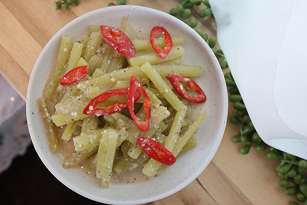 爽やかなモイウィデ(ヨモギの茎)のごま油炒め