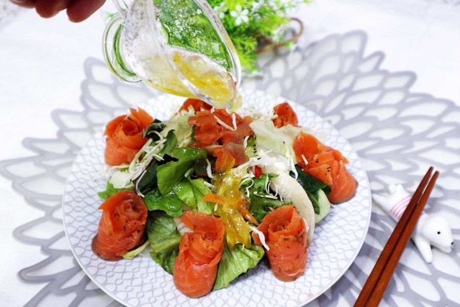 簡単スモークサーモンサラダと美味しい柚子ドレッシングの作り方