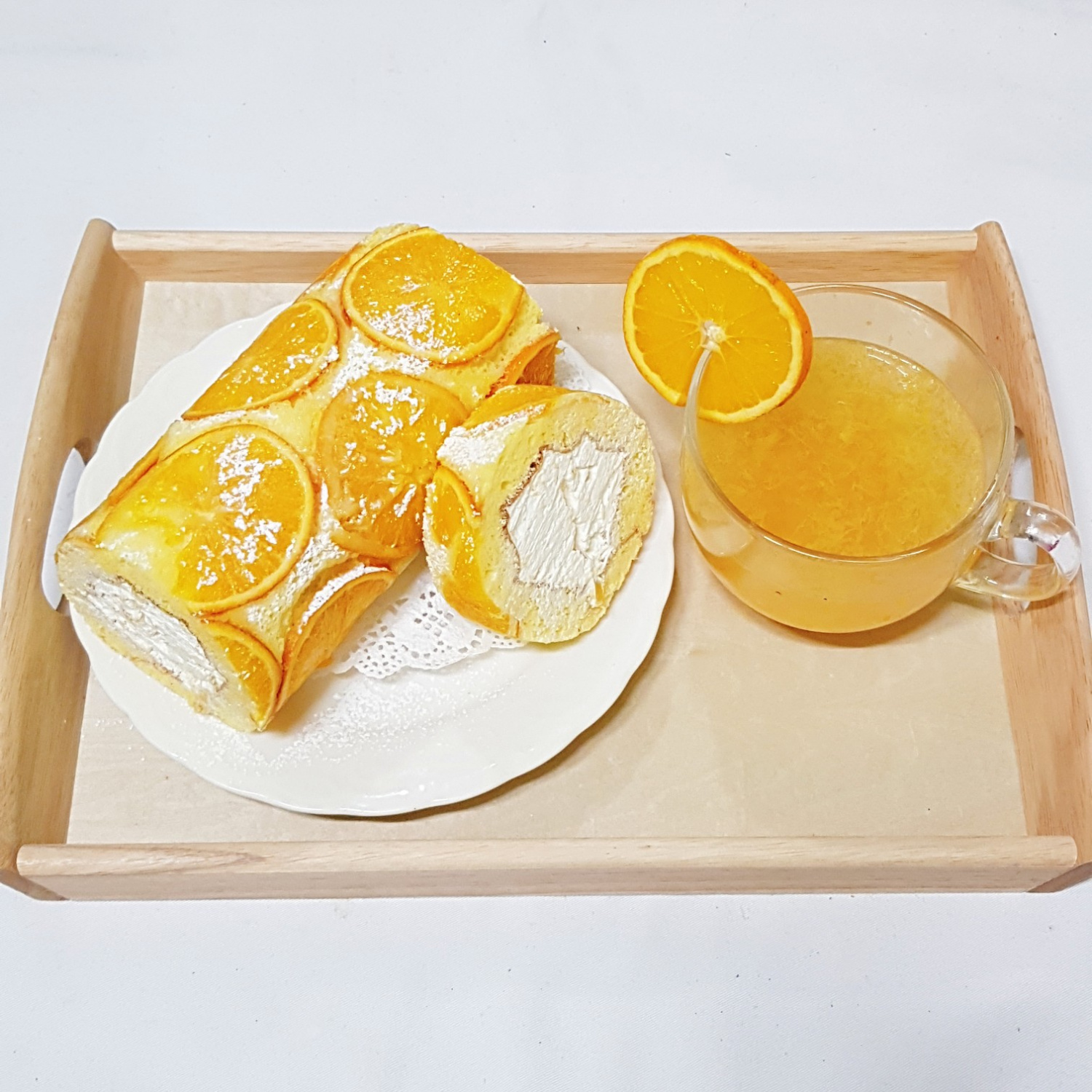 ビタミンたっぷり!口いっぱいに広がる爽やかさ、手作りオレンジロールケーキ