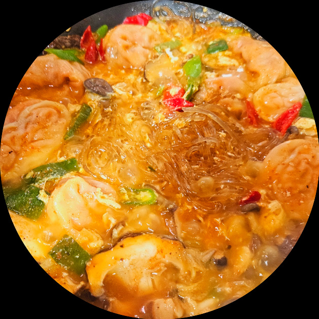 ピリ辛で刺激的なものが食べたい気分の日には、数日前に仕込んだ牛骨スープを使って「牛骨スープのキムチマンドゥチゲ」を作りましょう。餃子、韓国春雨、きのこが絶妙に絡み合い、本当に美味しいです。辛いものが食べたくなった日にぜひおすすめです。