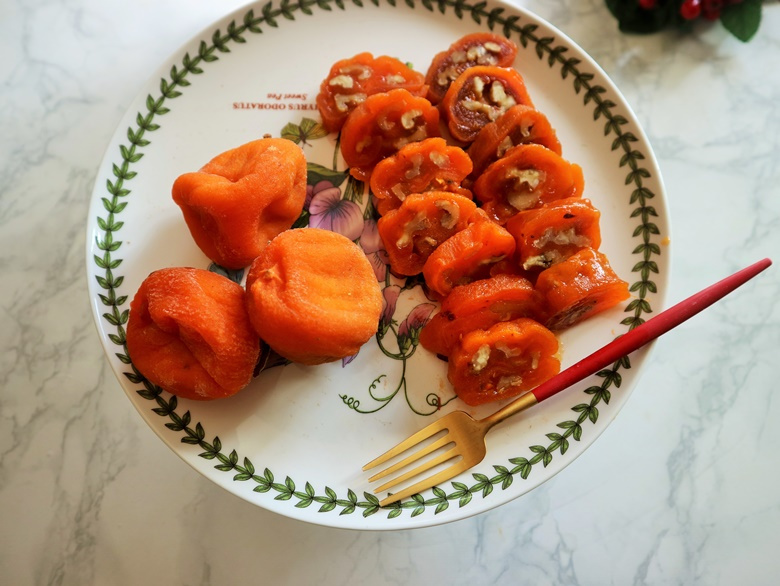 干し柿は、お歳暮のギフトやお土産として販売されることが多いですが、家庭では冷凍庫にストックしておき、小腹が空いたときに取り出して食べられる、韓国を代表するヘルシースナックでもあります。そのまま食べても美味しい干し柿ですが、くるみと巻くことで、栄養価もアップし、新しい美味しさが楽しめます。