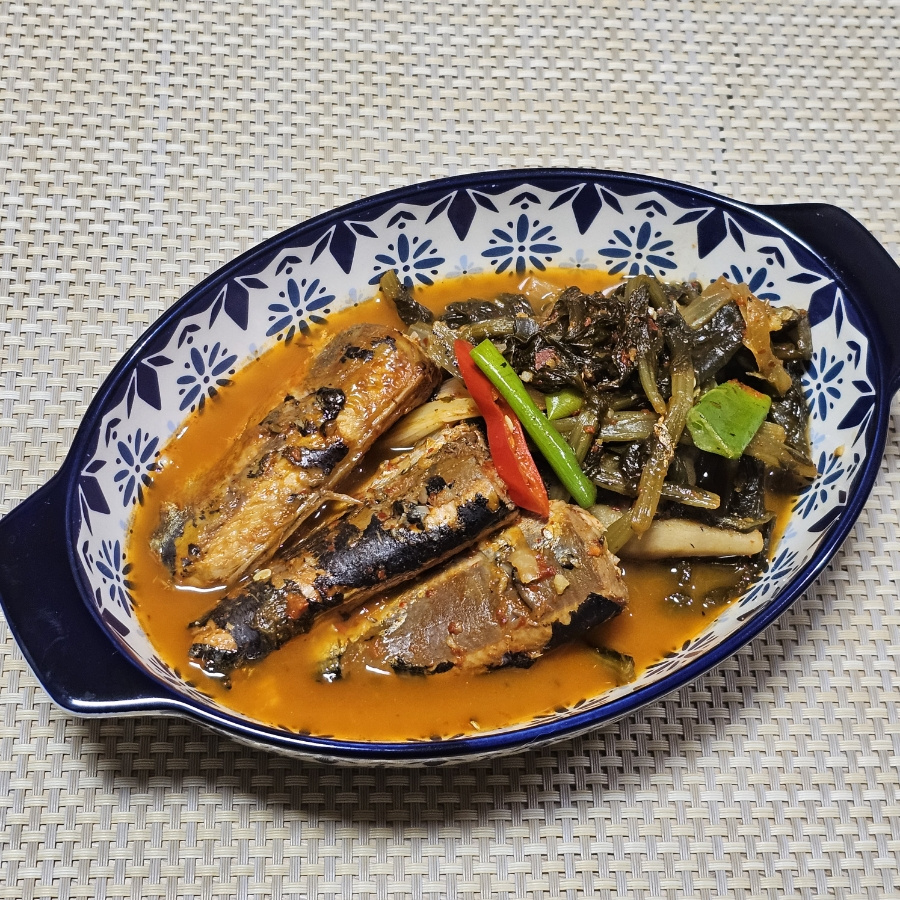 タンパク質豊富なサンマ缶と、爽やかに熟成した大根キムチの調和!ご飯泥棒になること間違いなしのピリ辛で美味しい煮込み料理は、秋から冬にかけて楽しめるボリューム満点の食事にぴったりです。