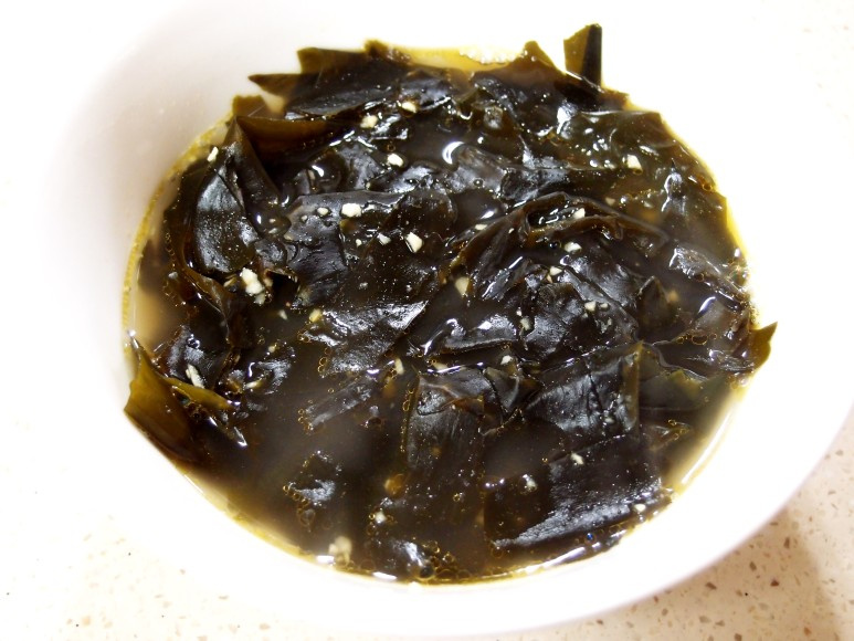 まず、乾燥した生地(キジャン)わかめを戻します。ボウルに乾燥わかめを入れ、冷水に約10分間浸して、柔らかくなるまで十分にふやかしてください。わかめの量によってふやける時間は多少異なりますので、指で触って柔らかさを確認しましょう。