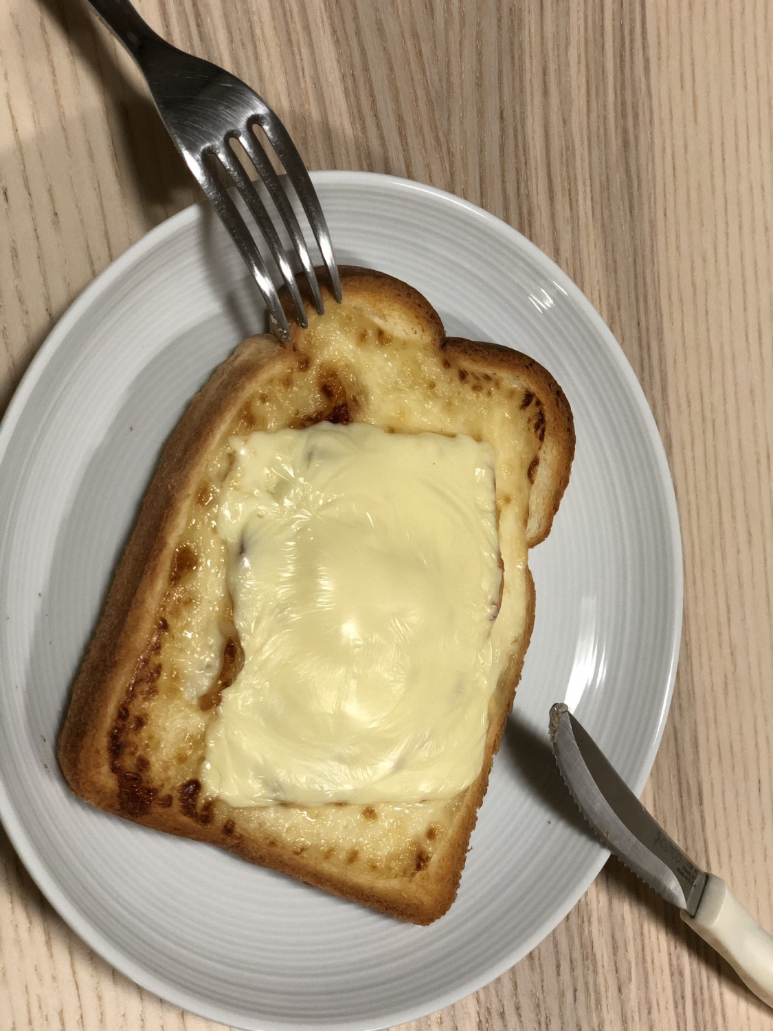 美味しいエッグトーストの完成です!お好みで、チーズを卵の上に直接乗せる代わりに、卵を割って入れる前にパンの上にチーズを乗せ、その上にマヨネーズで枠を作って卵を入れると、チーズがよりとろとろに溶けます。卵の上に直接乗せると、チーズが少し固くなることがあるので参考にしてください。温かいうちに召し上がると、最高の味を楽しめますよ!
