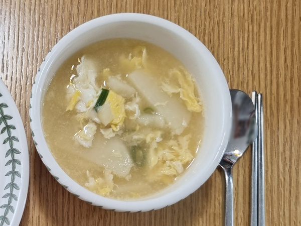 スープが再びしっかりと沸騰したら火を止め、器に盛り付けます。温かく優しい味の卵とじゃがいものスープの完成です!ご飯を入れて雑炊のようにしても美味しいですよ。
