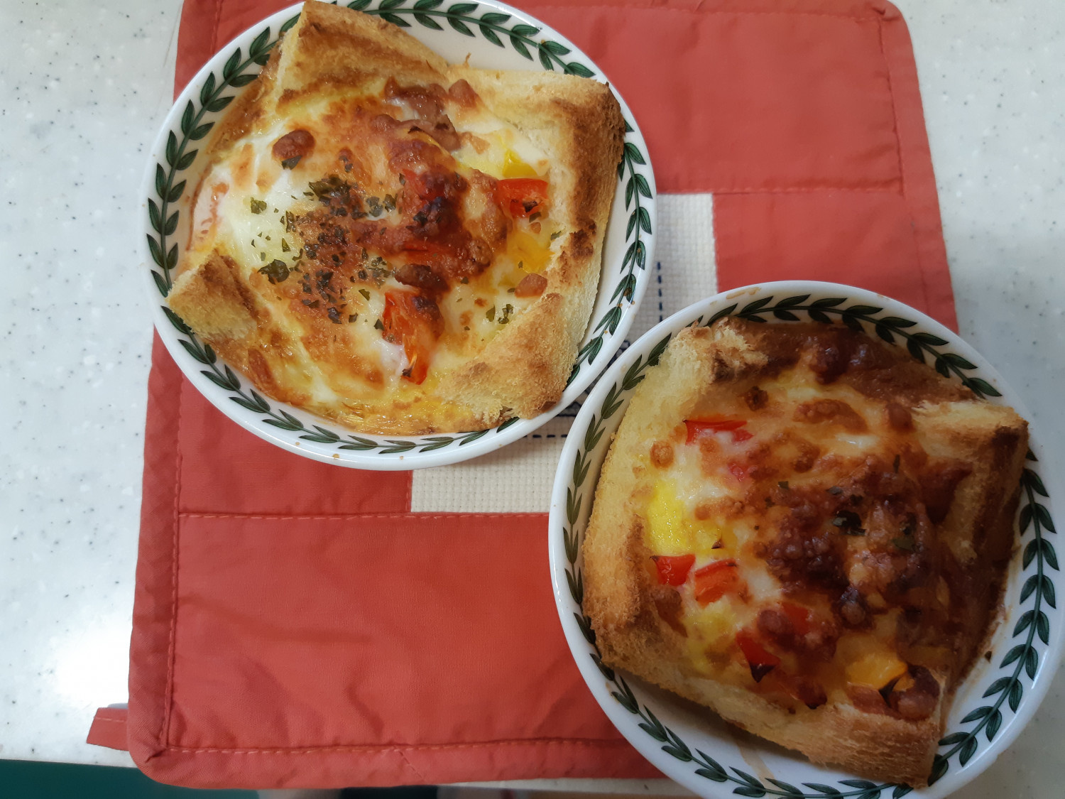 じゃーん!美味しそうにこんがりと焼きあがった食パンキッシュです。外はサクサク、中はしっとりの食感に、たっぷりの具材が絡み合って、本当に美味しそうですね!