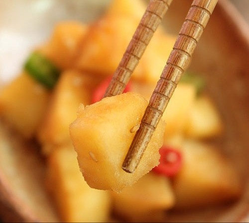 美味しい甘じょっぱい、やみつきになるじゃがいもの煮物の完成です!温かいご飯の上に乗せて混ぜて食べると最高です。ぜひ、今晩のおかずに作ってみてくださいね!