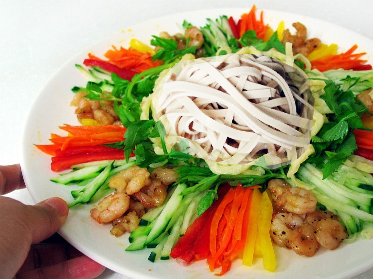 全ての野菜は細切りにします。彩り豊かに盛り付けると、見た目も美しく食欲をそそります。お皿にきれいに並べましょう。