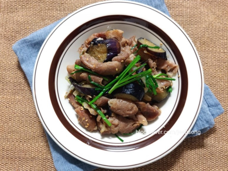 豚バラ薄切り肉とネギ・ナスの中華風炒め