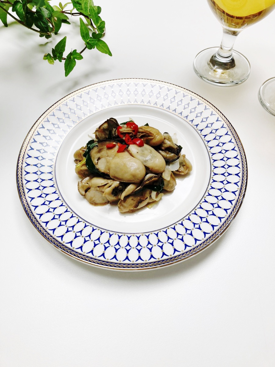 牡蠣と調味料がよく絡み、水分が少なくなってきたら、切っておいた長ネギを加えます。ネギがしんなりするまで1分ほど炒め合わせます。最後に、こしょうを軽く振って香りを添えたら、美味しいバター焼き牡蠣の完成です!温かいうちに召し上がるのがおすすめです。