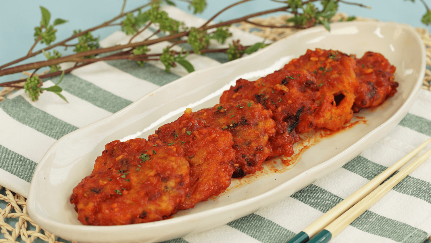 サクサクに揚げた野菜かき揚げを、甘辛い特製ソースにたっぷり絡めて。やみつきになる美味しさです。もしお正月に余った天ぷらやチヂミがあれば、アレンジして作っても美味しいですよ!