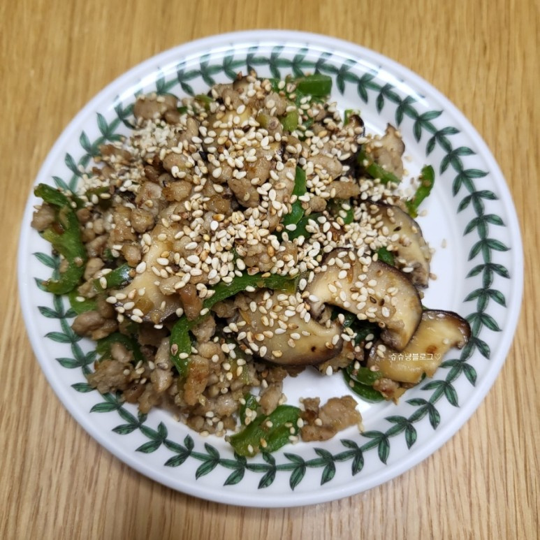温かいご飯と一緒に食べると絶品の椎茸とピーマンの炒め物の完成です!きれいなお皿に盛り付けて、美味しく召し上がってください。^^