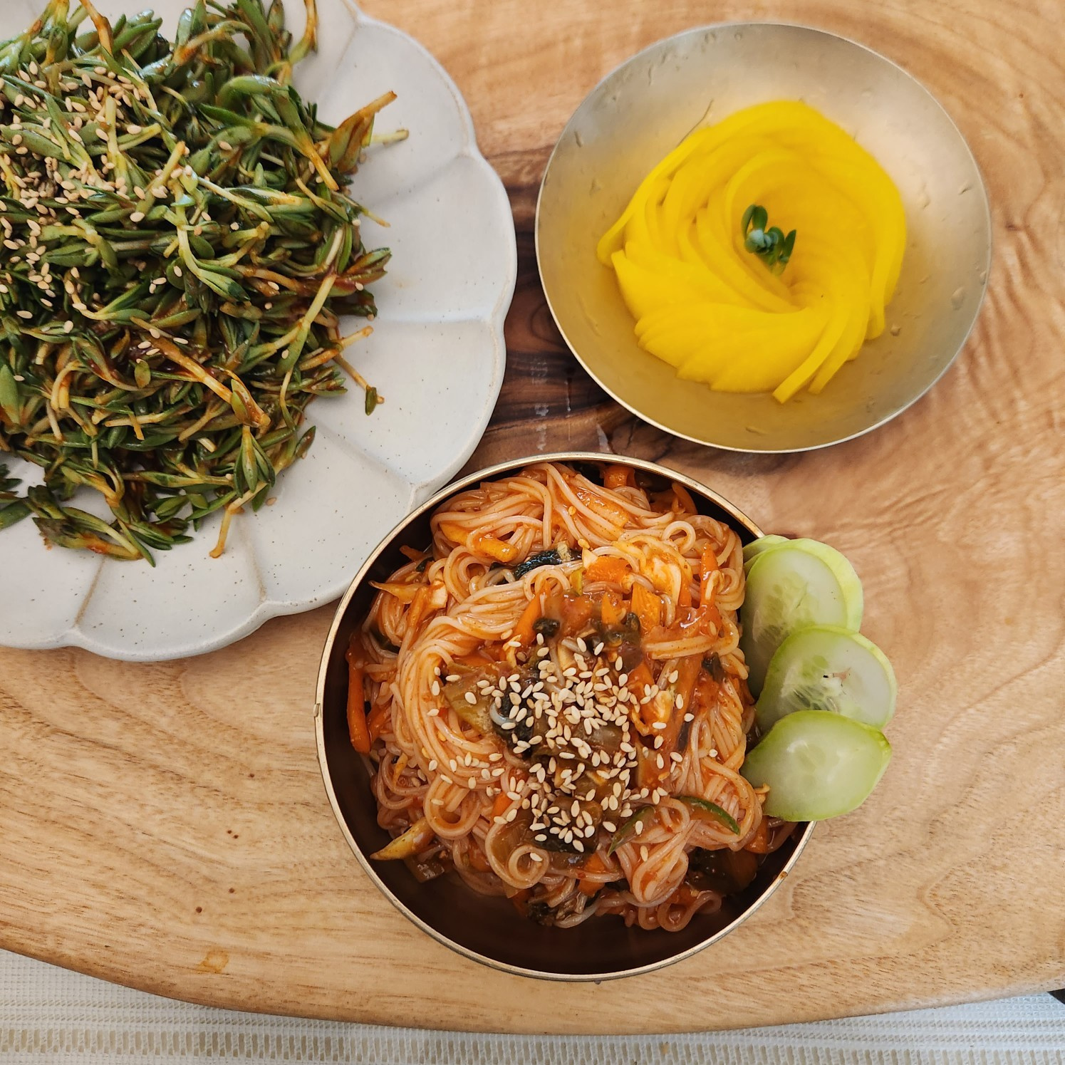 甘酸っぱくてもちもち!食欲をそそる갓キムチビビンククス(カッキムチビビンククス)の作り方