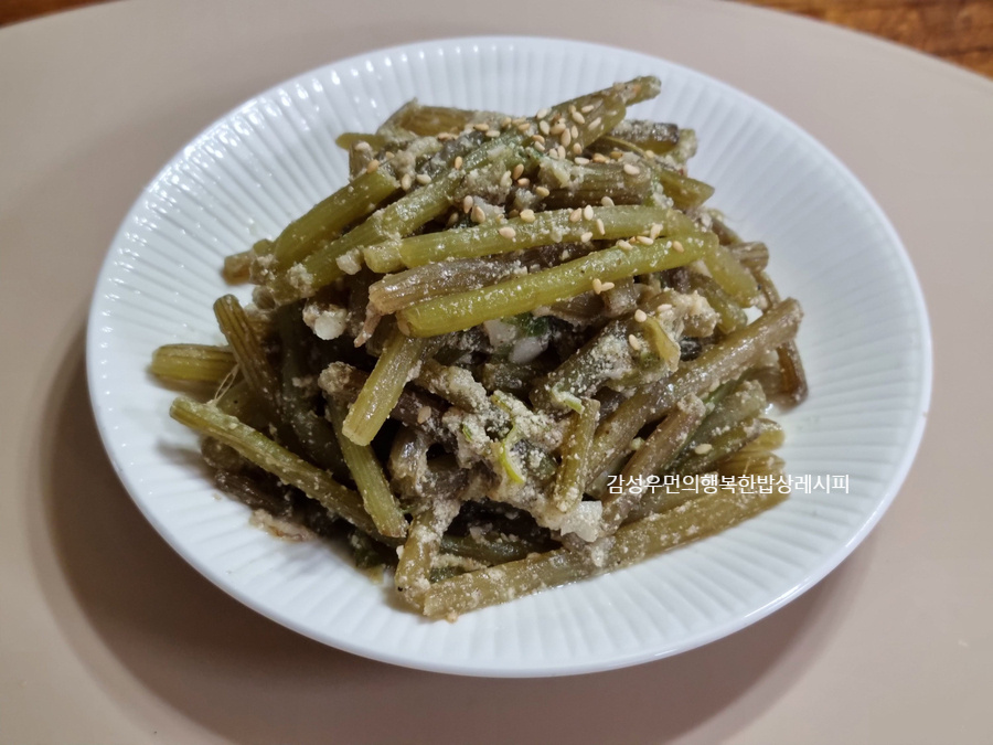 煮込んでいる間に味見をし、もし薄ければ塩で味を調えます。汁気が程よく煮詰まったら、くるみパウダー大さじ2~3を加え、全体に均一に混ぜ合わせます。最後にくるみ油大さじ2を回しかけ、もう一度軽く炒めれば、香ばしいふきのとうの茎のくるみ味噌炒めの完成です。仕上げに白ごまを少々散らすと、さらに彩り豊かに仕上がります。