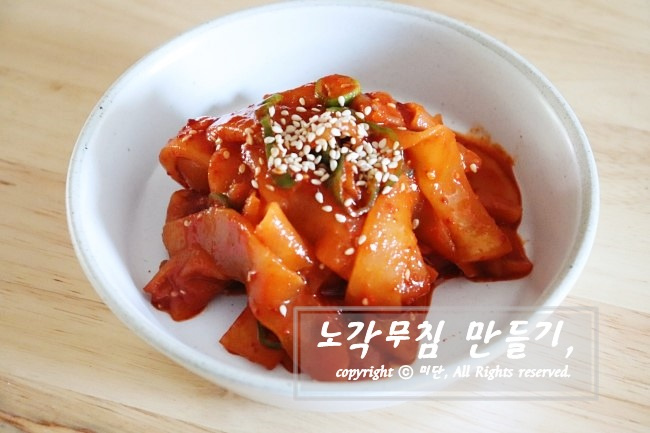 最後に、準備しておいたみじん切りの青唐辛子と、追加のごま、ごま油を加えて軽く混ぜ合わせれば、シャキシャキで美味しいノガクムチムの完成です!甘酸っぱくもピリ辛な味わいが食欲をそそり、ご飯のおかずとして最高です。どうぞ召し上がれ!