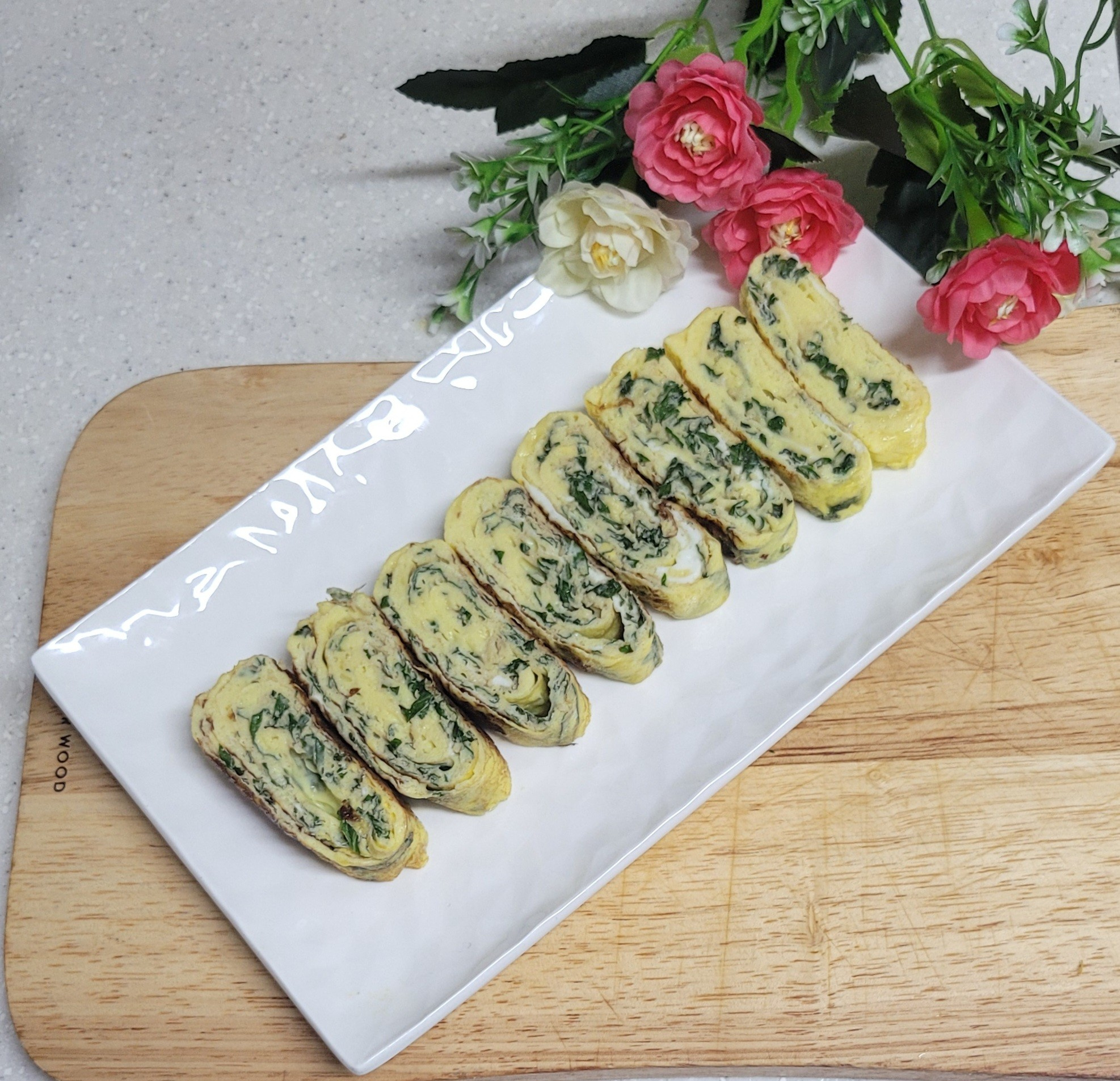 新鮮なエゴマの香りとふんわりとした卵が絶妙に組み合わさった、エゴマの卵焼きです。ご飯のおかずにも、お酒のおつまみにも最適で、お子様のおやつにもぴったりの栄養満点料理です。特別な材料がなくても、見栄えの良い一品が完成します。