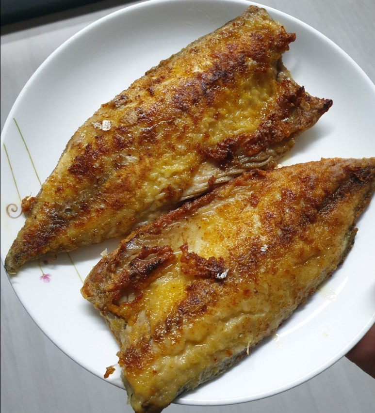 じゃーん!カレーの香りがふんわりと広がり、生臭さは全くない、こんがりときれいな焼き色のカレー風味焼きサバが完成しました。見た目も良く、味も素晴らしい今日のメインディッシュとして美味しく召し上がってください!