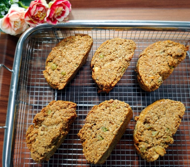エアフライヤーで作るヘルシーで美味しいソリテ・モカ・ビスコッティのレシピ(アーモンド粉、全粒粉、ライ麦粉使用)