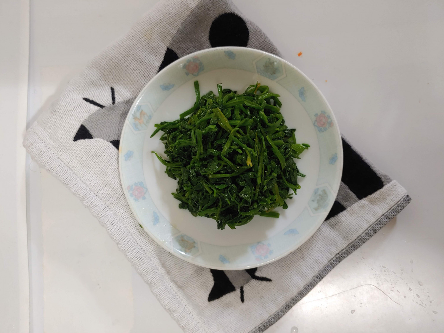 茹で上がったミナリの葉は、すぐにザルにあげ、冷たい流水で手早く洗い流してください。こうすることで、ミナリの鮮やかな緑色を保ち、シャキシャキとした食感を維持できます。手でしっかりと水気を絞ってください。