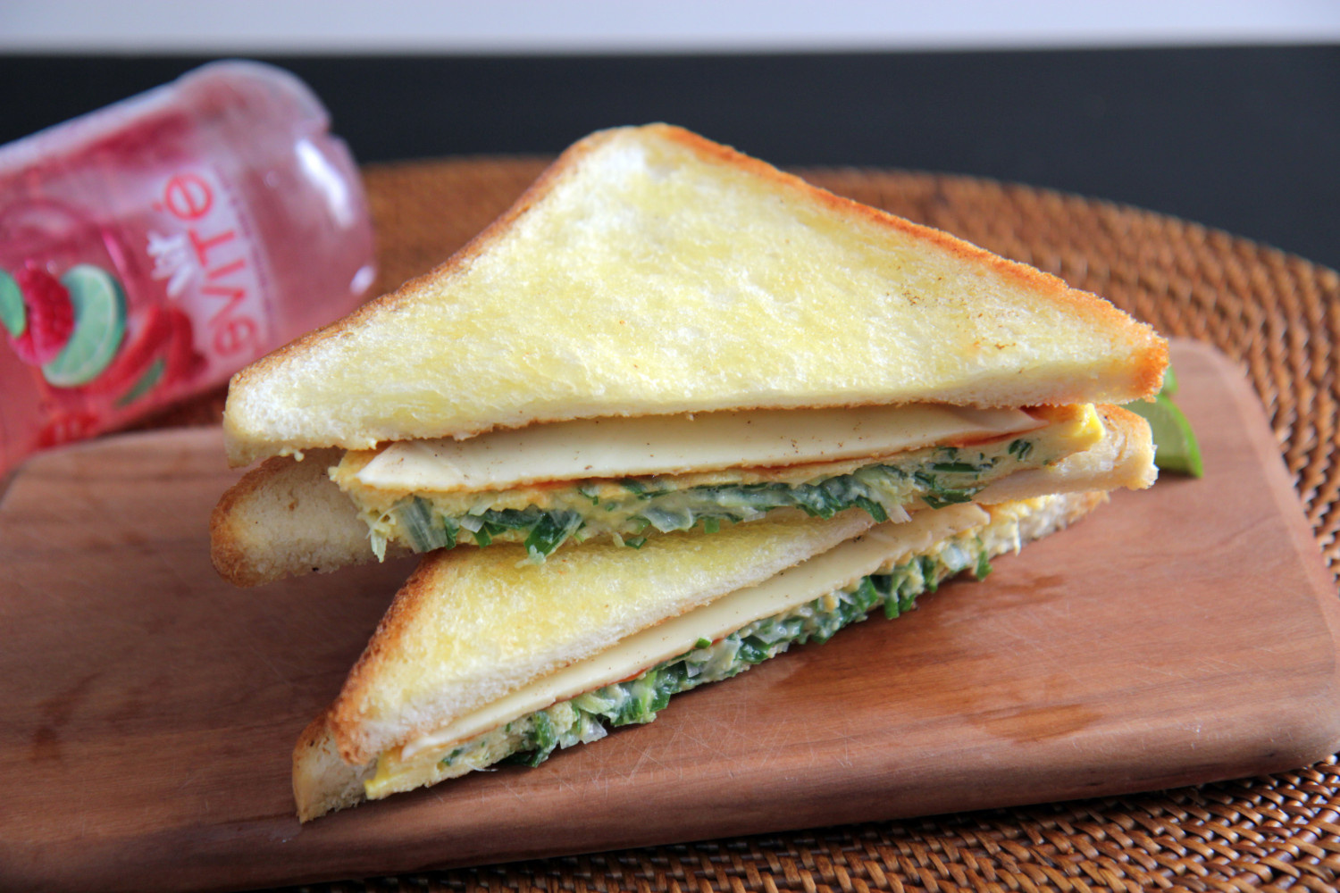 最後に残りの食パン1枚をかぶせれば、香ばしいねぎの風味が満載の、見事なねぎトーストの完成です!温かいうちに召し上がると、さらに美味しくいただけます。