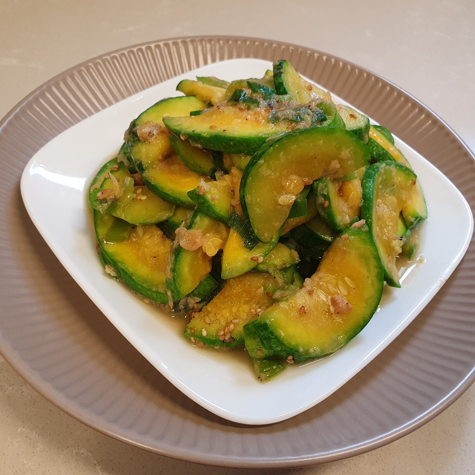 새우젓(塩辛エビ)で和える、シャキシャキズッキーニのナムル